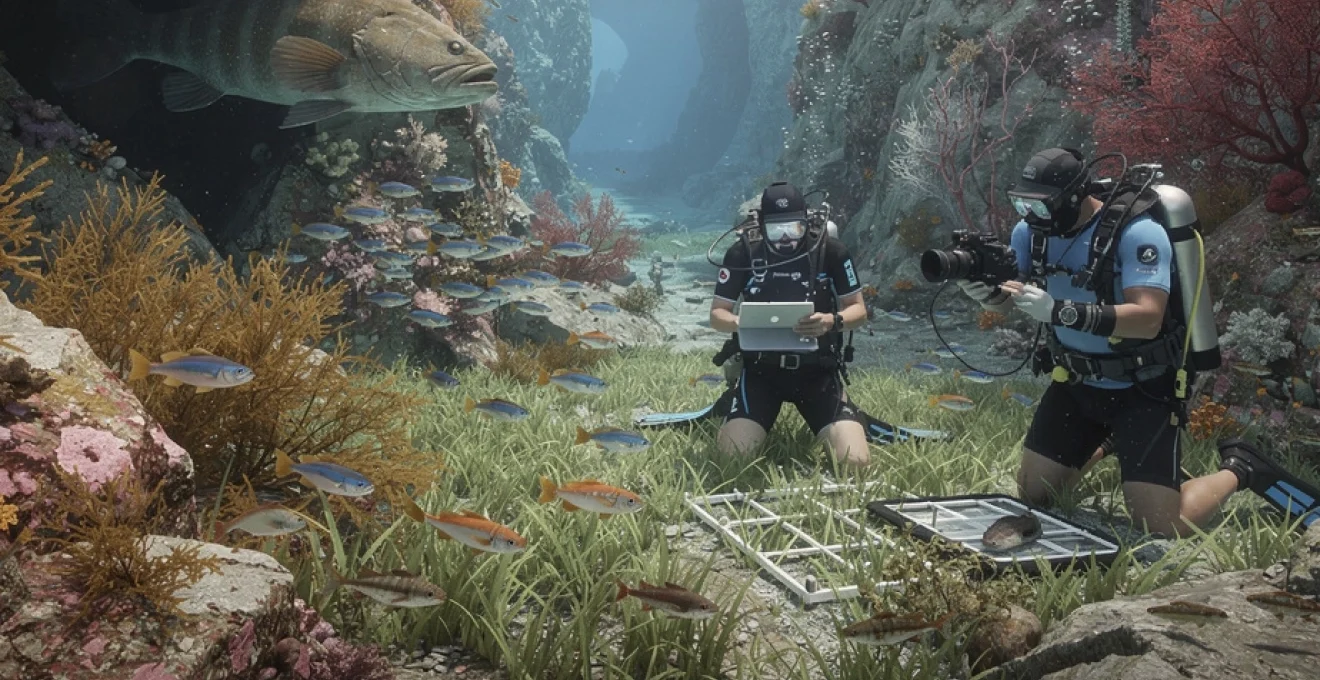 Parmi les outils utilisés, les transects en plongée autonome restent une méthode de référence : des plongeurs formés recensent de manière systématique les poissons, les invertébrés remarquables et la couverture d’habitats (posidonie, coralligène, rochers nus) le long de lignes prédéfinies. Ces données fournissent des indices de densité, de biomasse et de structure de taille pour les principales espèces cibles (mérou, corb, denti, labridés, etc.). En parallèle, des quadrats photographiques sont utilisés pour suivre la composition détaillée des communautés benthiques sur les tombants et les plateaux coralligènes, permettant de détecter d’éventuels changements subtils dans la dominance des espèces.