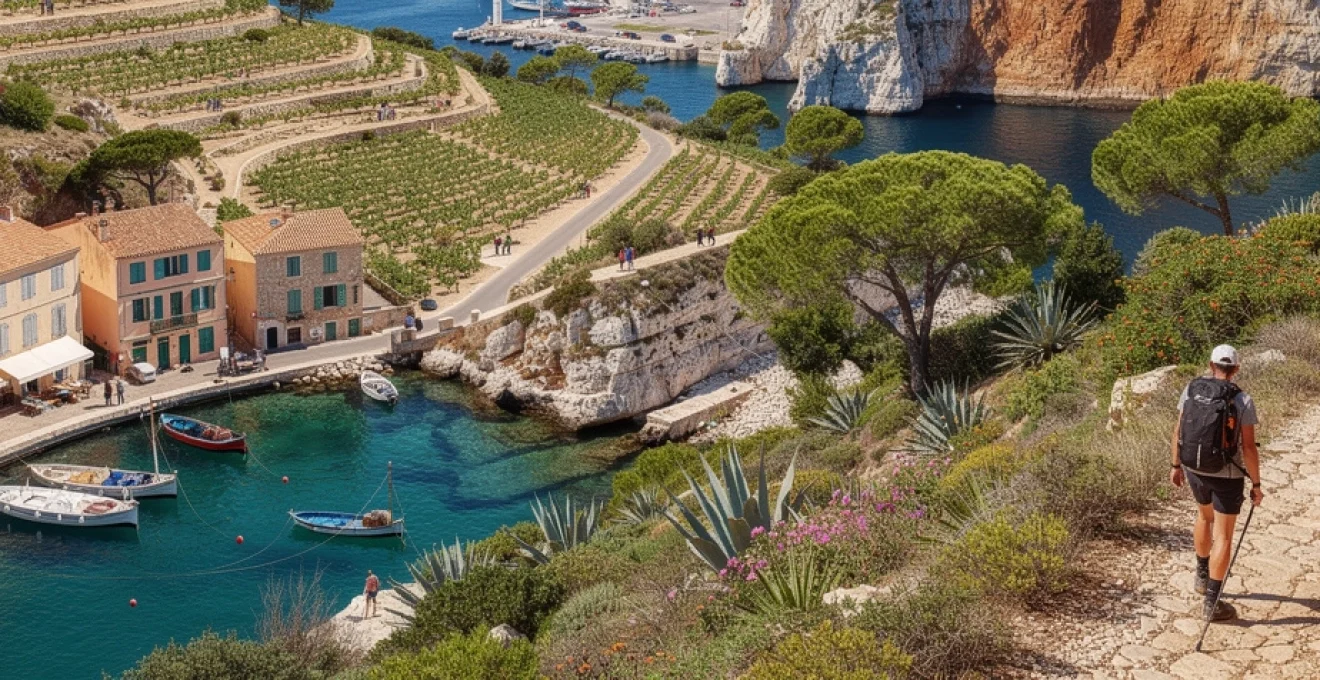 Pour les amateurs d’œnotourisme, Cassis constitue un terrain d’exploration privilégié. Plusieurs circuits pédestres et cyclistes balisent les collines viticoles, reliant village, bastides vigneronnes et points de vue panoramiques sur la baie. En été comme en arrière-saison, ces balades dans les vignobles AOC Cassis offrent une approche sensorielle complète du territoire : odeur de garrigue, lumière sur les calcaires clairs et fraîcheur des caves enterrées.